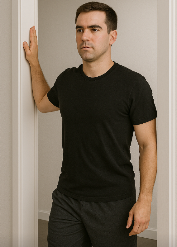 5️⃣ Doorway Pec Stretch (가슴 근육 열기)
